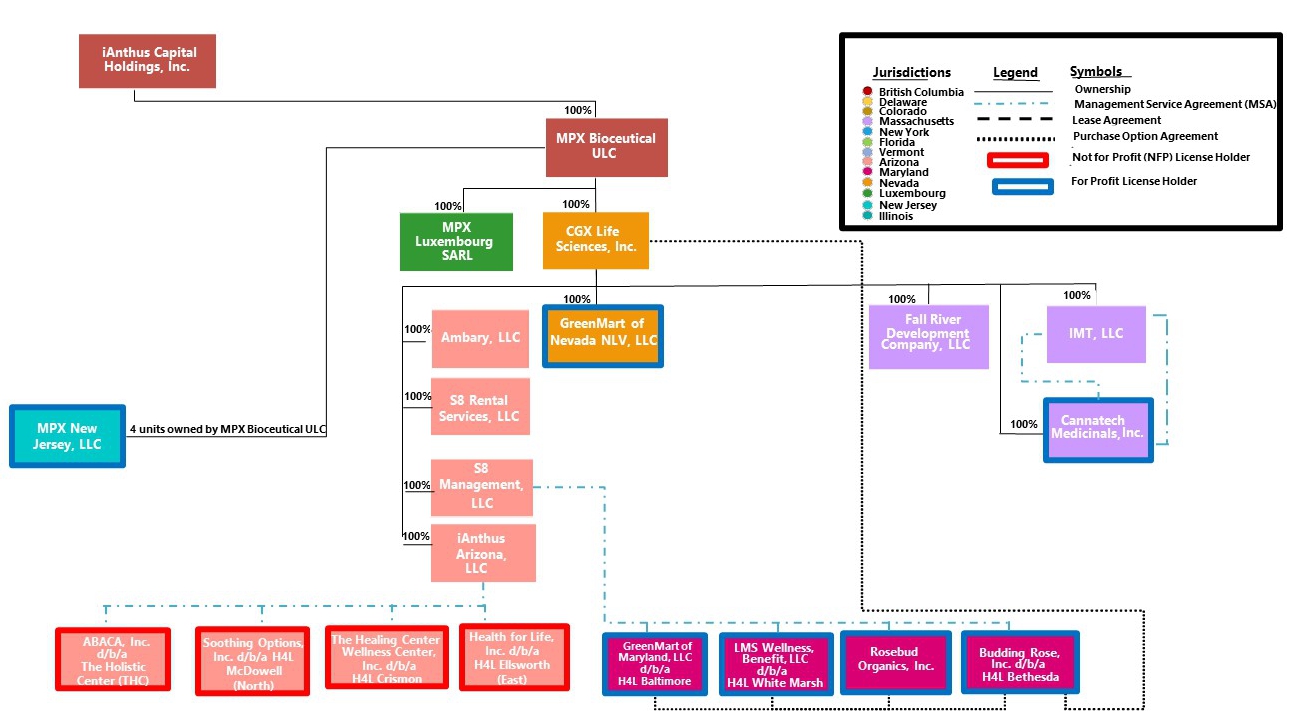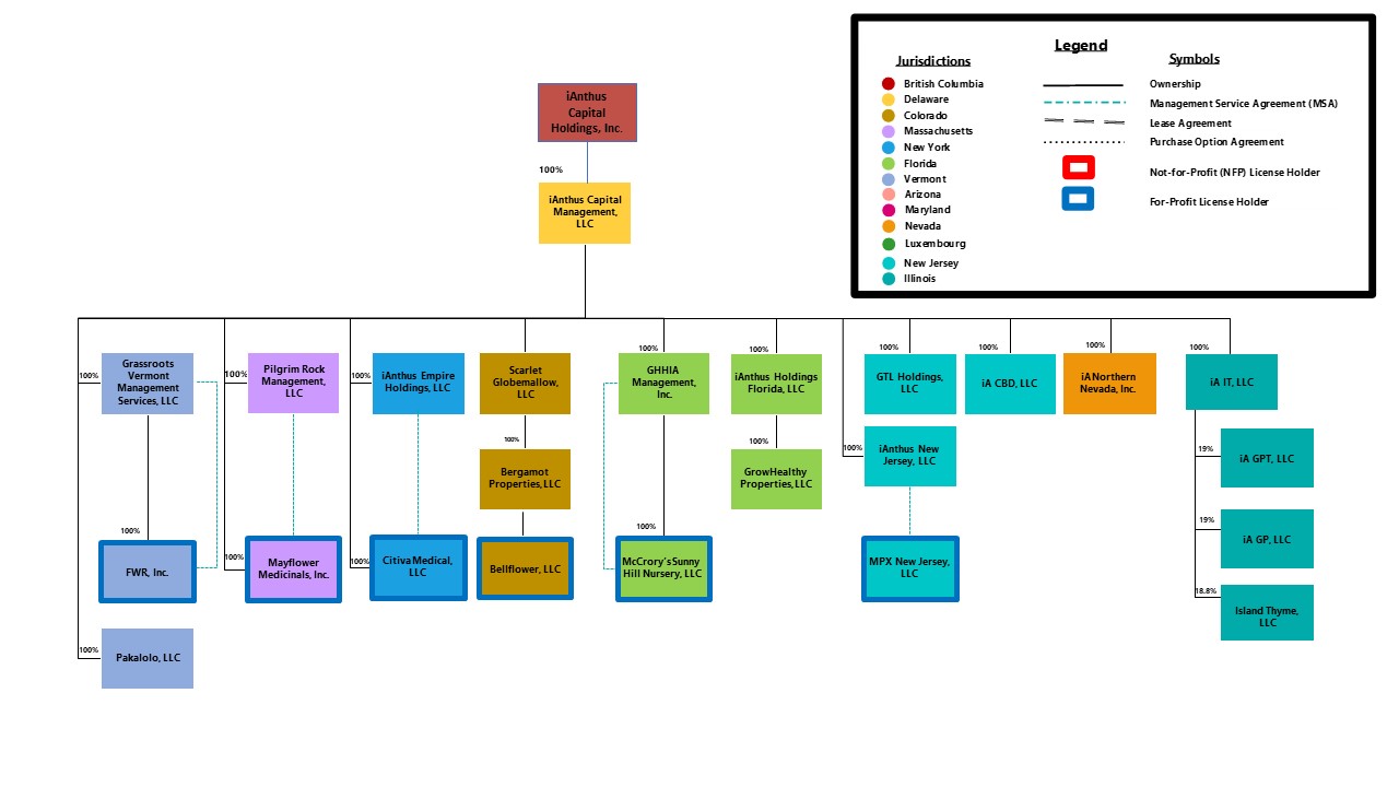 iAnthus Capital Holdings, Inc. (the “Company”) is a holding company with the subsidiaries set forth in the chart below.